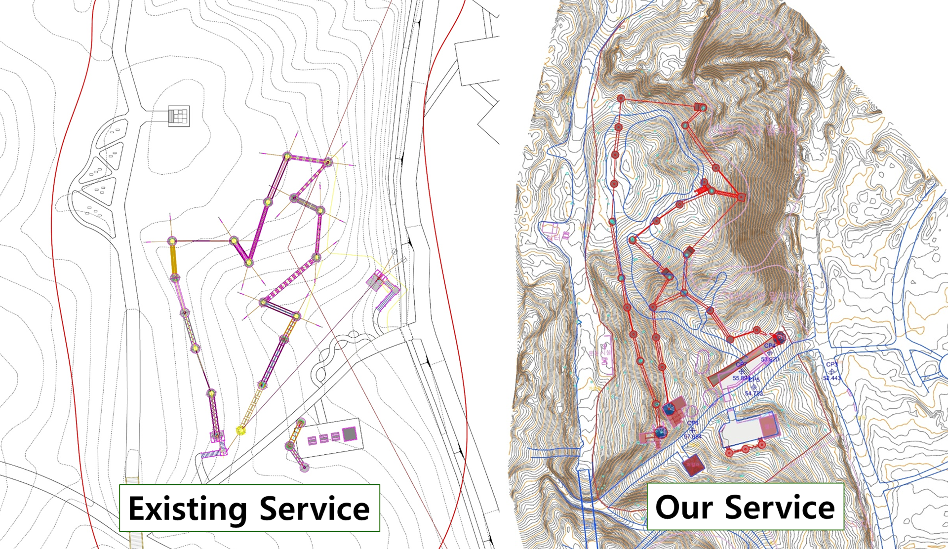 대상지의 지형·지장물·시설물·식생·환경 요소를 수치화하고